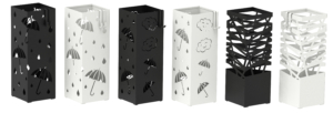 Den dekorative udformning giver et let og eksklusivt udtryk, samtidig med at konstruktionen er stabil og rummelig – med plads til flere paraplyer. En integreret drypbakke i bunden beskytter gulvet mod vand og holder området rent og pænt.