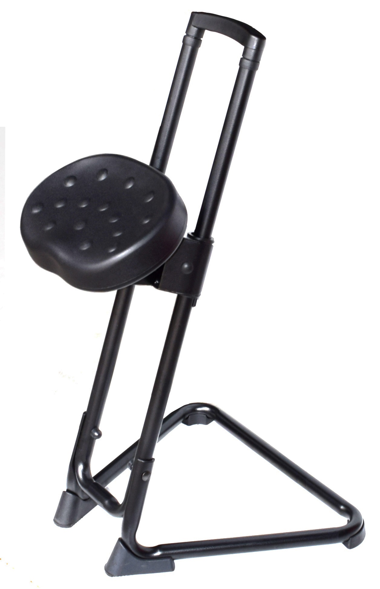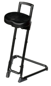 For værksted og kontor til at lindre trætheden under stående arbjede. Kan bruges som arbejdsstol til operatør, butiksmedarbejder, gamer og DJ. Let sadelblødt sæde design for mere komfort og støtte til rygsøjlen ved at reducere smertefuldt tryk på ryggen. Stor vinkel drejelig sæde med automatisk tilbage stillingssystem gør det smartere. Har nem højde- og vinkeljusterings mekanisme. Robust stålkonstruktion og store gummifødder gør den stærk og stabil.